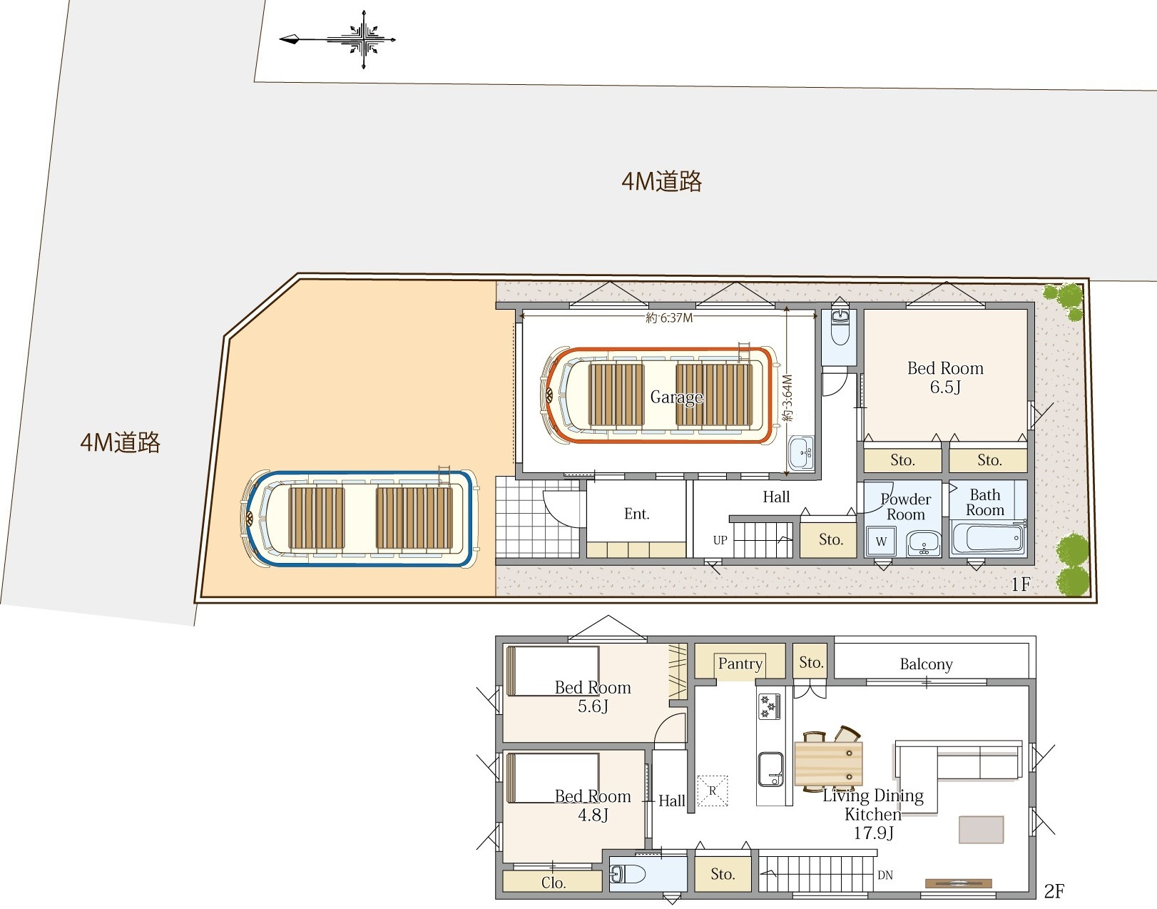 ●建物面積 98.07㎡(29.66坪)※車庫部分18.21㎡含