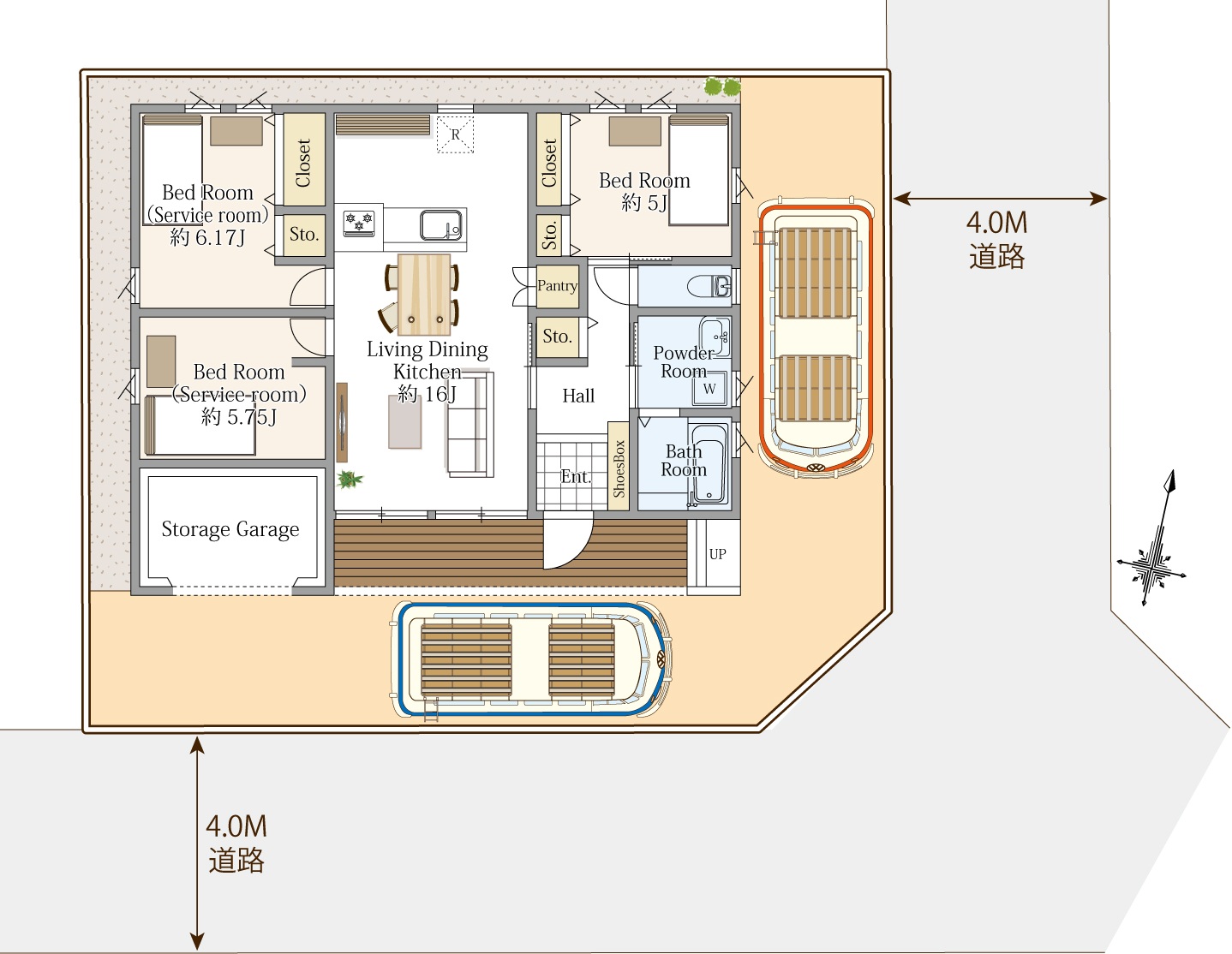 ・普段は2台、ゲストが来れば最大4台停めれる充実のカースペース