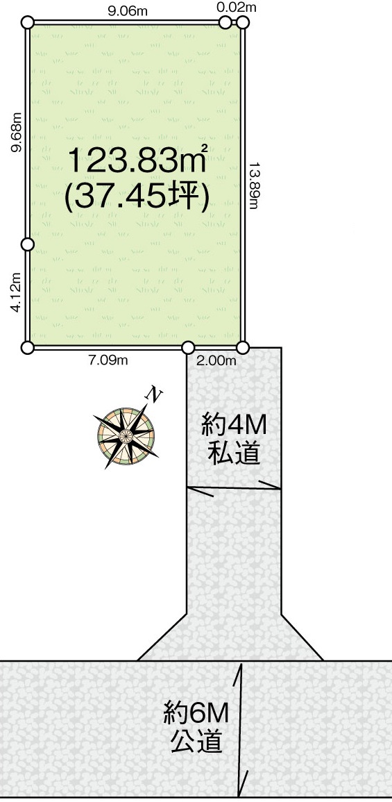 現況では公道に接していない為、再建築不可。再建築可能にするための諸条件を整備中。